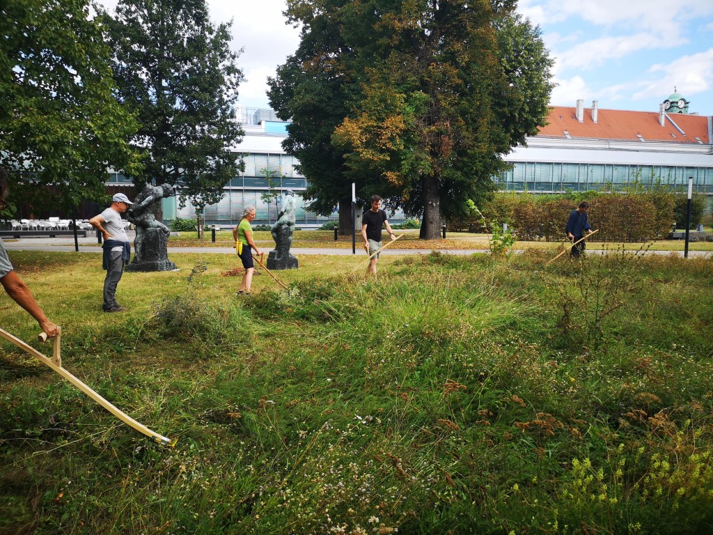 Mit dem Sensenkurs am Campus konnten wir den Grundstein für eine gemeinschaftliche, insektenschonenden und postfossile Mahd am Campus der Uni Wien legen.