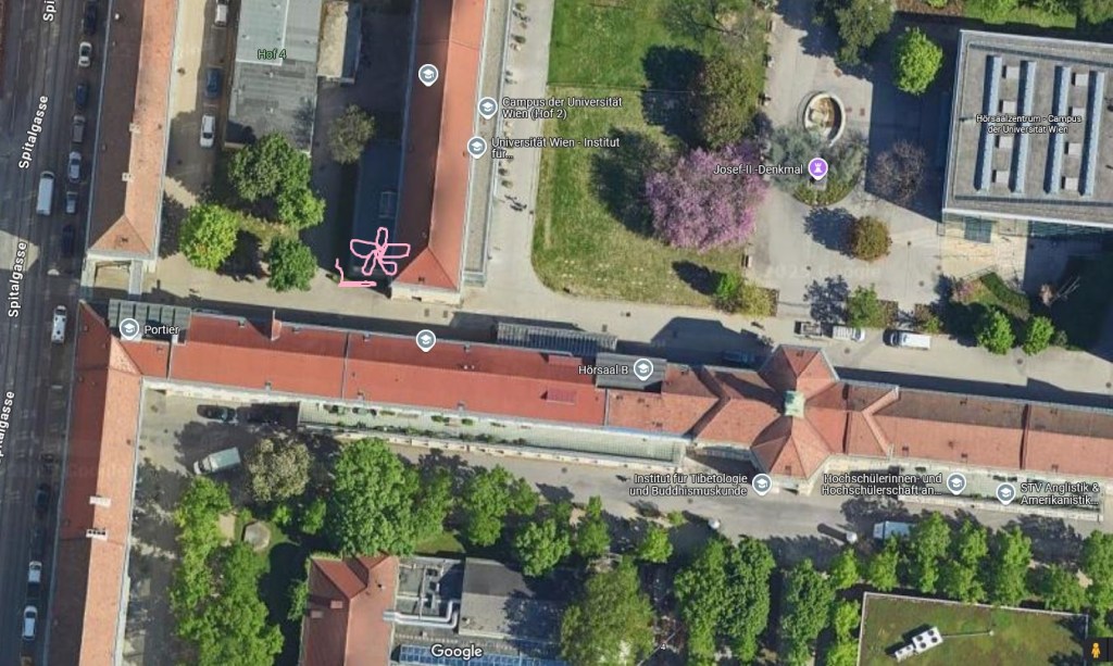 Quelle: Google Maps Campus Uni Wien, Spitalgasse 2, 1090 Wien mit grafischen Notizen.