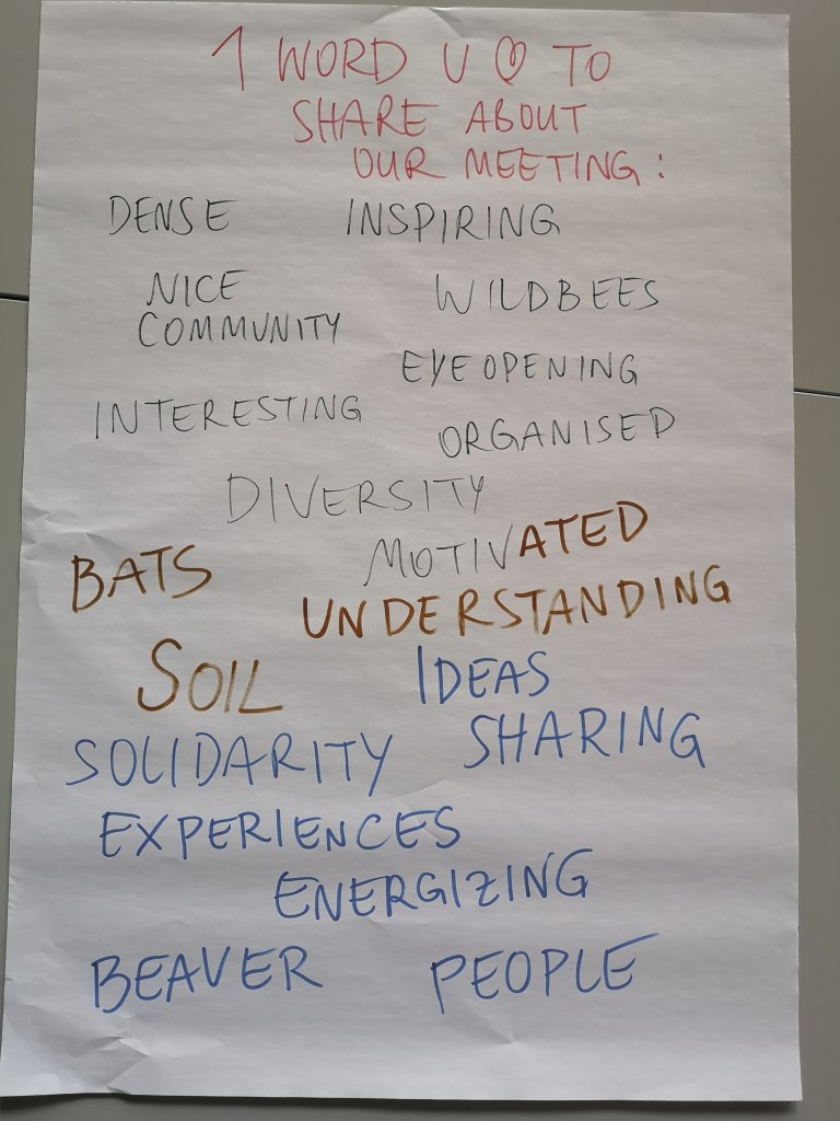 Als Abschluss haben wir eine einfache Reflexion durchgeführt mit je einem Wort pro Person, das wir hier im Rückblick auf das Wiener Projekt-Treffen teilen: