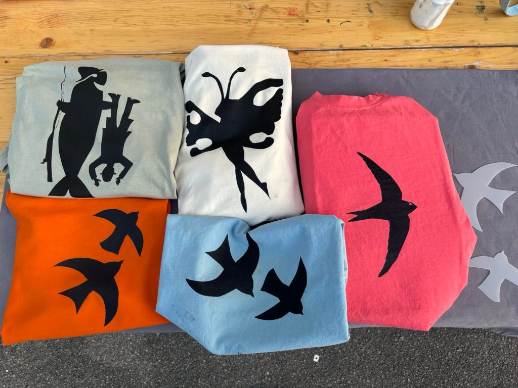 Eindrücke von unserem Nachmittag heute, der Artenschutz und das Setzen von Pflanzen für mehr Artenvielfalt mit Geschichten über Artenschutz und künstlicherischem Siebdruck verbunden hat. Ihr seht die kreativen Siebdruck-Arbeiten oben, die wir heute entworfen und gemeinsam gedruckt haben.