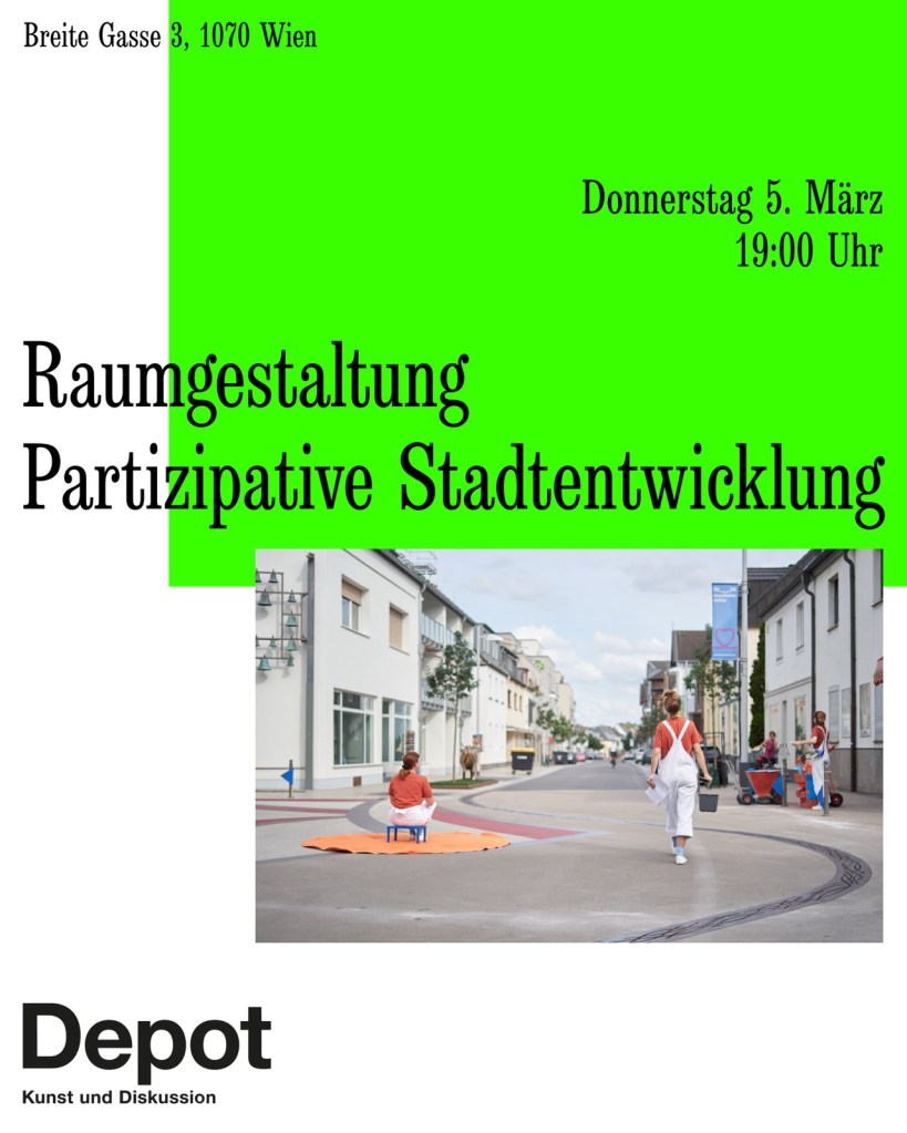 Diesen Fragen widmet sich die Veranstaltung „Raumgestaltung – Partizipative Stadtentwick-lung“ am Donnerstag, 5. März 2026, um 19:00 Uhr im Depot, Breite Gasse 3, 1070 Wien. Die Ver-anstaltung wird live übertragen: https://lnkd.in/dHZnAMez